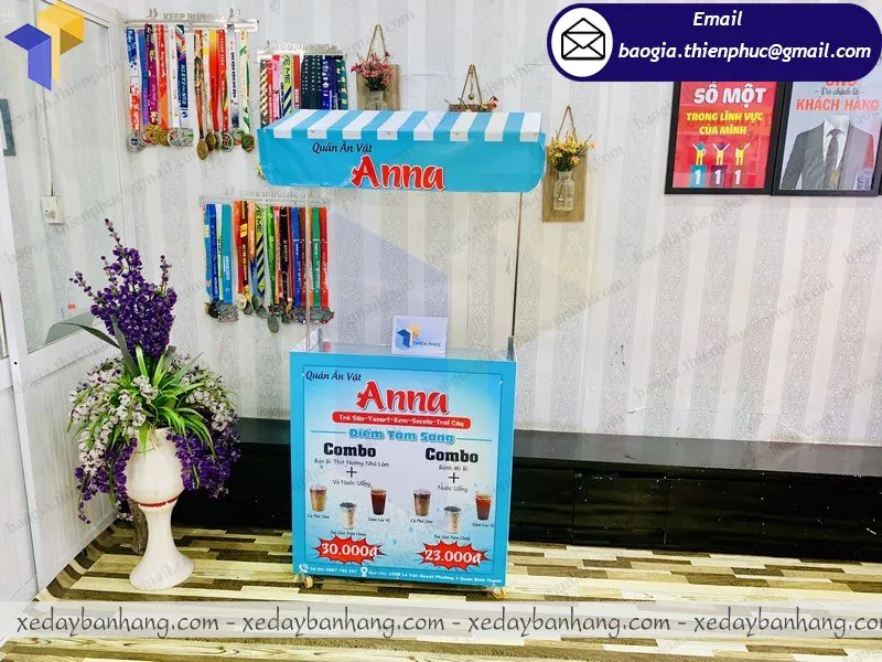 Công ty Thiên Phúc chuyên sản xuất và thiết kế quầy lắp ráp di động các loại, xe đẩy bán hàng siêu thị,… với đội ngũ kỹ sư giàu kinh nghiệm, nguyên liệu nhập khẩu và thi công chắc chắn, thiết kế bắt mắt. Chúng tôi tự tin có thể giúp bạn phát triển thương hiệu. Nếu bạn có nhu cầu bàn lắp ráp bán đồ ăn vặt ngay bây giờ hãy gọi cho chúng tôi để biết thông tin chi tiết. Công ty Thiên Phúc- Hotline: 0903897980