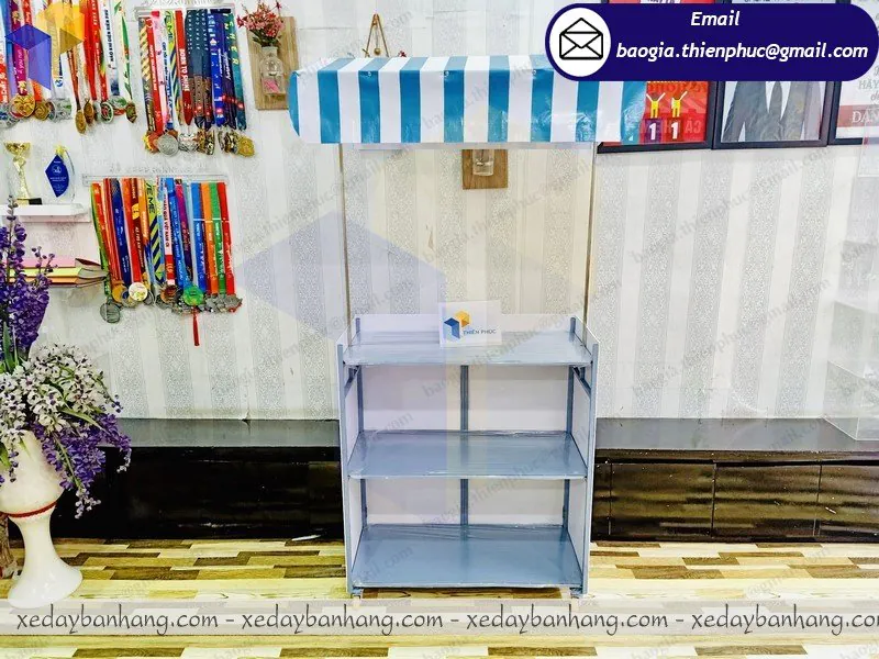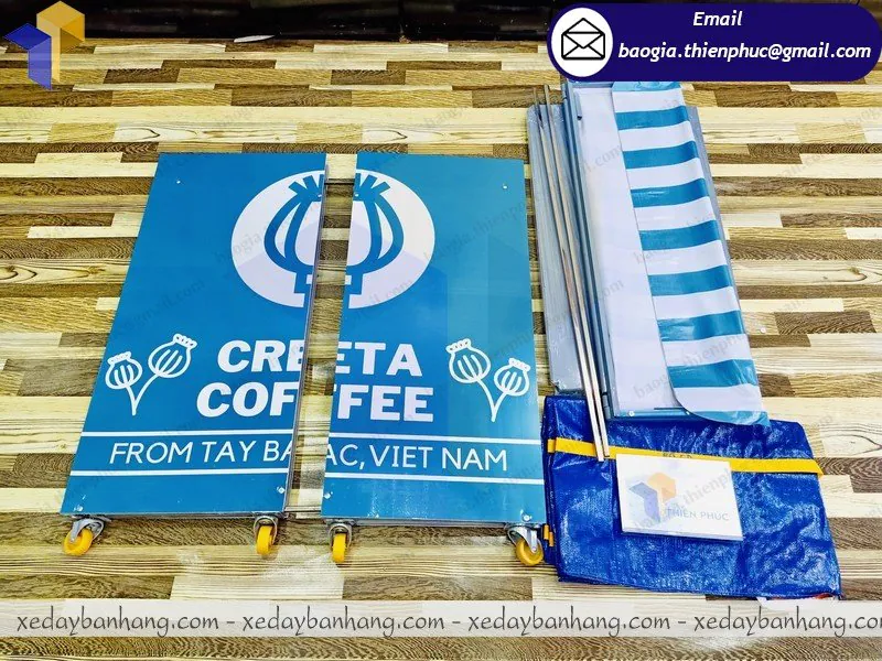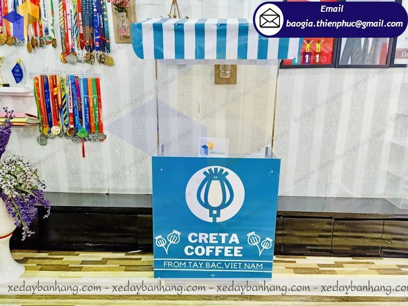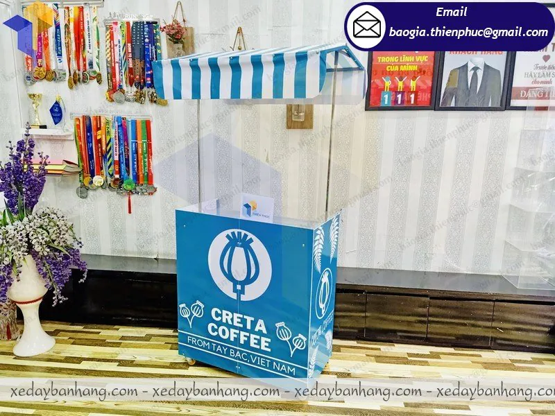 Thiên Phúc chuyên sản xuất các loại xe lắp ráp bán cafe giá rẻ, booth sampling, xe lắp ráp bán cafe bằng sắt các loại quầy kệ trưng bày hàng di động,… quầy sắt bán hàng hay còn gọi là xe lắp ráp bán cafe, là một điểm bán hàng nhỏ, có thể đặt trong siêu thị, hội chợ hay cửa hàng. Thường thì một xe lắp ráp bán cafe có kích thước nhỏ và không lớn do giới hạn diện tích tại các điểm bán hàng. Do đó xe lắp ráp bán cafe giá rẻ được thiết kế gọn gàng, nhưng vẫn có thể chứa đựng đủ lượng hàng hóa trưng bày cần thiết để giới thiệu cho khách hàng.