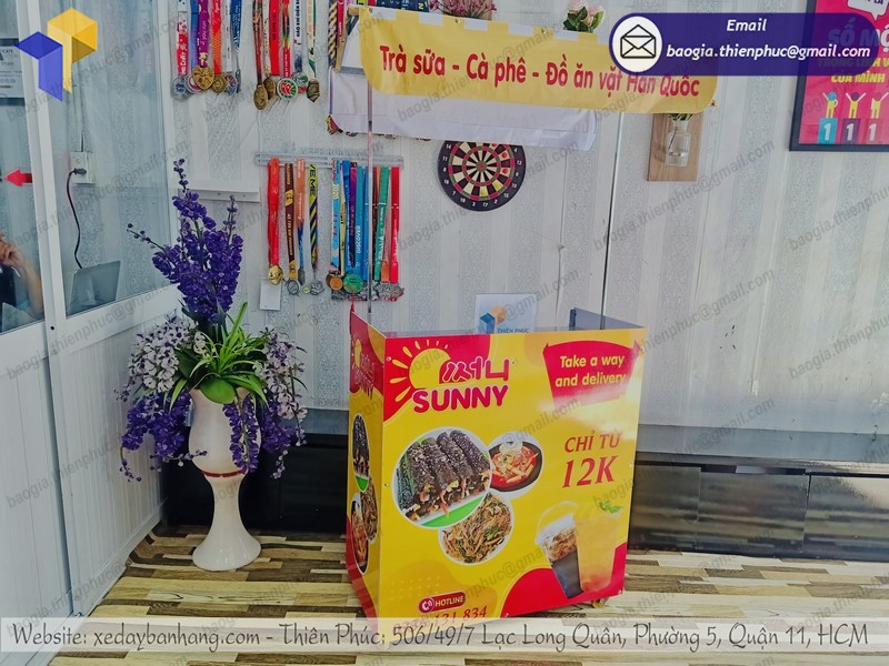 Thiên Phúc là một trong những công ty chuyên cung cấp các vật phẩm quảng cáo, đặc biệt là chuyên cung cấp xe bán đồ ăn vặt take away cho các công ty, doanh nghiệp nhỏ, vừa và lớn…Nhân viên cũng như các kỹ thuật tại Thiên Phúc được đào tạo với tay nghề cao, cách phục vụ chuyên nghiệp nên các sản phẩm booth sampling quảng cáo, xe bán hàng di động được làm ra luôn làm hài lòng khách hàng.