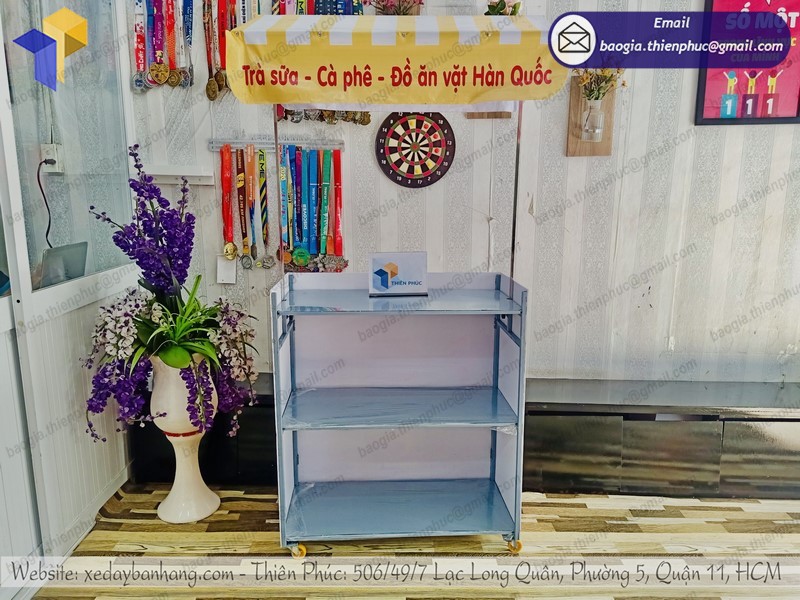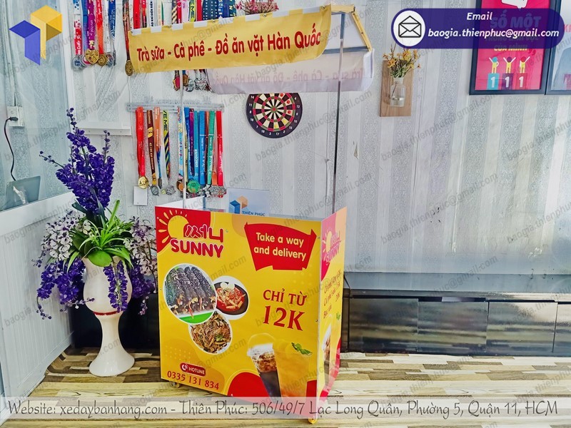 Hiện nay hình thức quầy bán hàng lưu động, xe bán đồ ăn vặt take away.. đã rất phổ biến tại các thành phố lớn. Các xe bán hàng lưu động thường được làm từ các chất liệu phổ biến như sắt, alu, decal, foam, mica…. Thiết kế bề ngoài rất quan trọng điều đó yếu tố thu hút sự chú ý từ khách hàng. Công ty Thiên Phúc với bề dày nhiều năm thiết kế sản xuất quầy bán hàng lưu động sẽ đáp ứng mọi yêu cầu từ quý khách hàng. Cùng Thiên Phúc tìm hiểu về dòng xe lắp ráp bán đồ ăn vặt di động này nhé