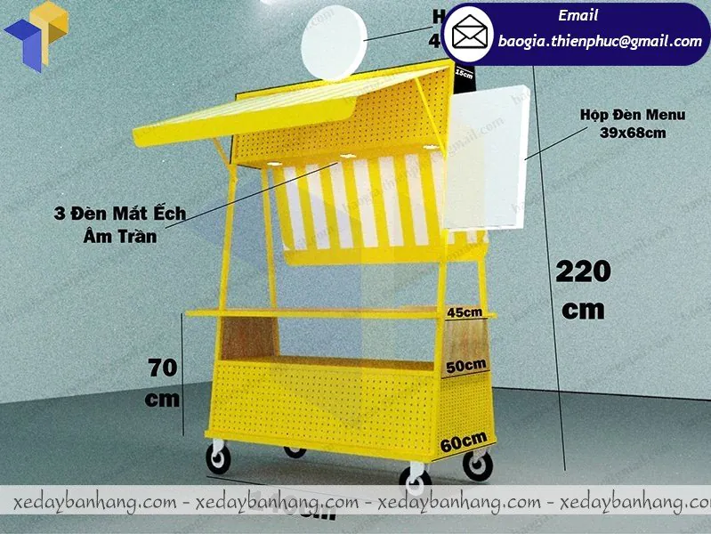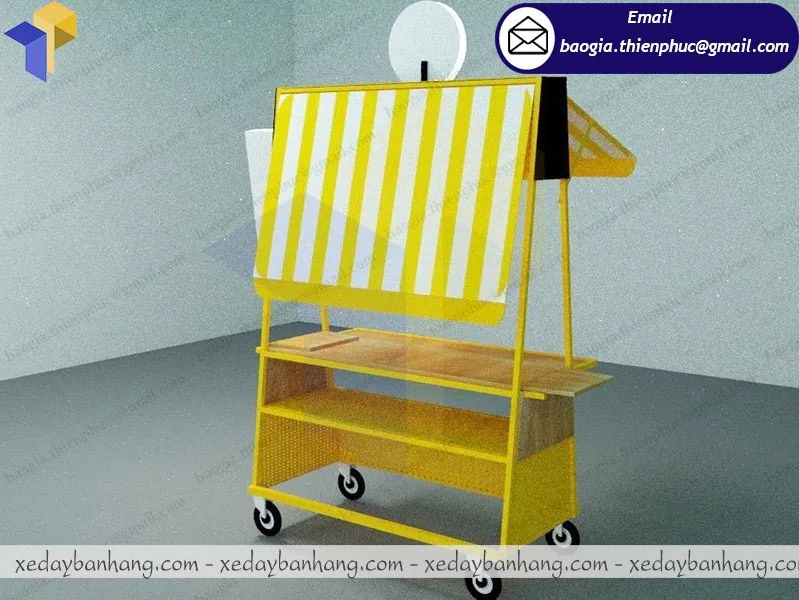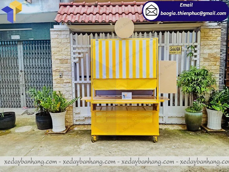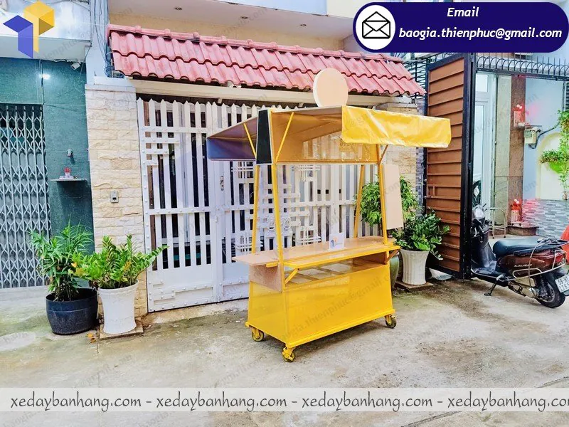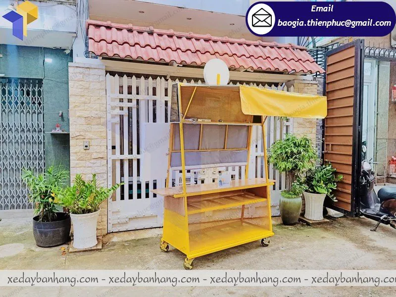 Xe khung sắt ốp gỗ bán cà phê giá rẻ được đóng tại xưởng Thiên Phúc có kích thước đa dạng theo yêu cầu, có khả năng di chuyển lưu động, che được nắng cho người bán và có thể kinh doanh nhiều loại nước uống khác như cam vắt, nước ép… xe khung sắt ốp gỗ bán cà phê được sử dụng với hình thức lưu động, di động.