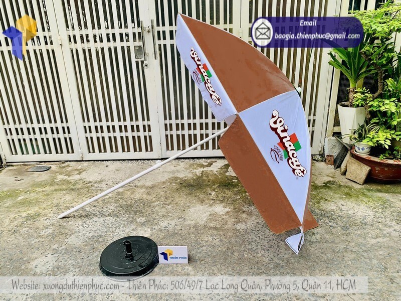 Đặt in logo ô dù quảng cáo ngoài trời sự kiện - Xưởng sản xuất Thiên Phúc nhận đơn đặt in logo ô dù quảng cáo với số lượng lớn, thiết kế logo hoàn toàn miễn phí, cam kết giá rẻ tận gốc chỉ từ 400.000đ/cây, liên hệ với chúng tôi để nhận được báo giá chi tiết và đặt hàng giao ngay trong vòng 1-2 ngày.