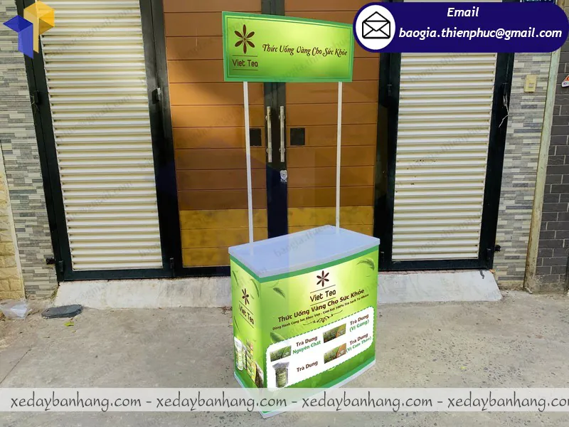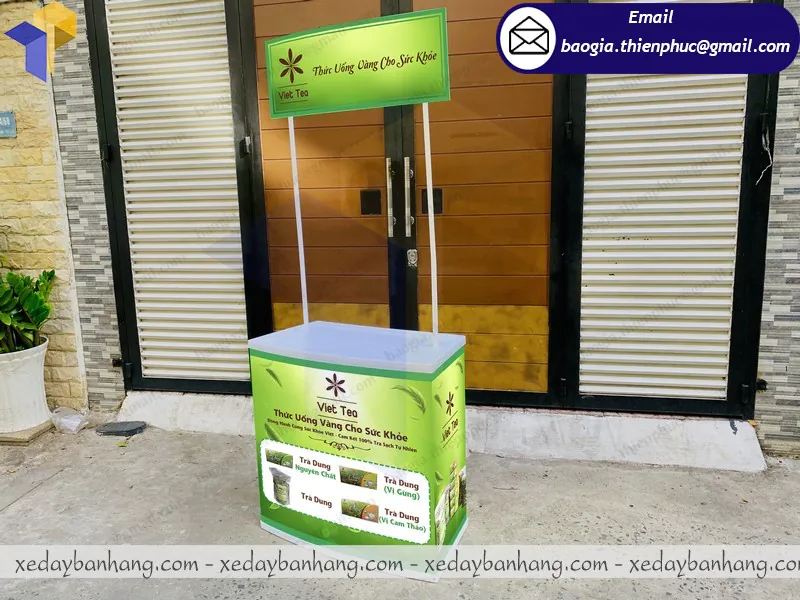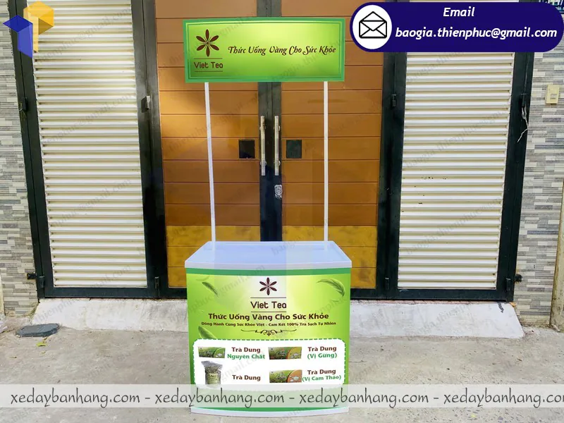 Bạn cần 1 đơn vị chuyên cung cấp bàn nhựa quảng cáo bán hàng đẹp, giá rẻ, chất lượng và sẳn sàng thiết kế theo yêu cầu nếu chưa có mẫu sẳn. Vậy thì mình xin giới thiệu cho bạn 1 xưởng chuyên đóng booth và xe lắp ráp giá rẻ khá nổi tiếng ở thành phố Hồ Chí Minh. Đó chính là xưởng Thiên Phúc – xưởng có hơn 10 năm kinh nghiệm trong lĩnh vực sản xuất và đóng các vật phẩm quảng cáo theo yêu cầu.