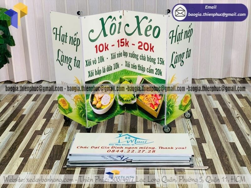 Tên sản phẩm: Đặt làm kệ bán đồ ăn đường phố gấp gọn ngoài trời với logo nhãn hiệu HẠT NẾP LÀNG TA bán Xôi Xéo