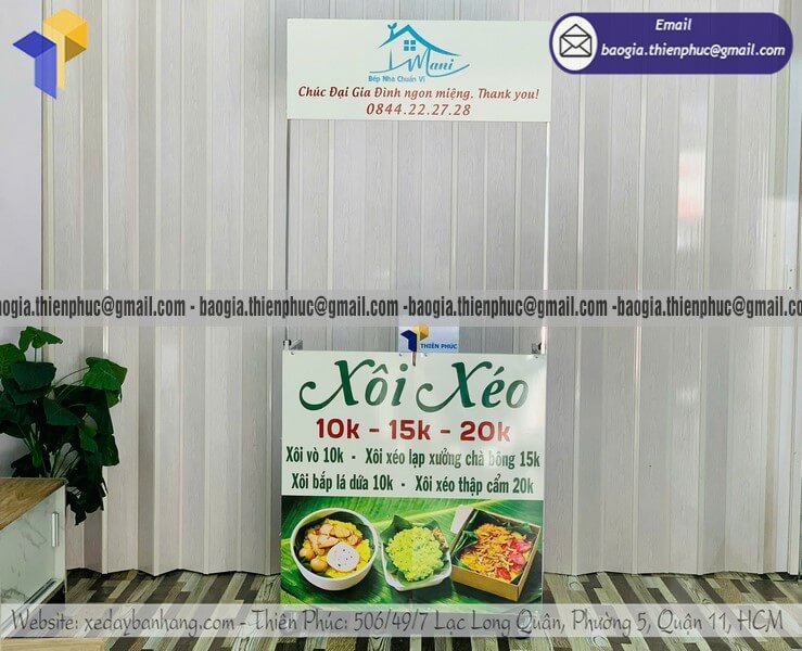 - Có thể nâng cấp bánh xe, mái che, bảng hiệu