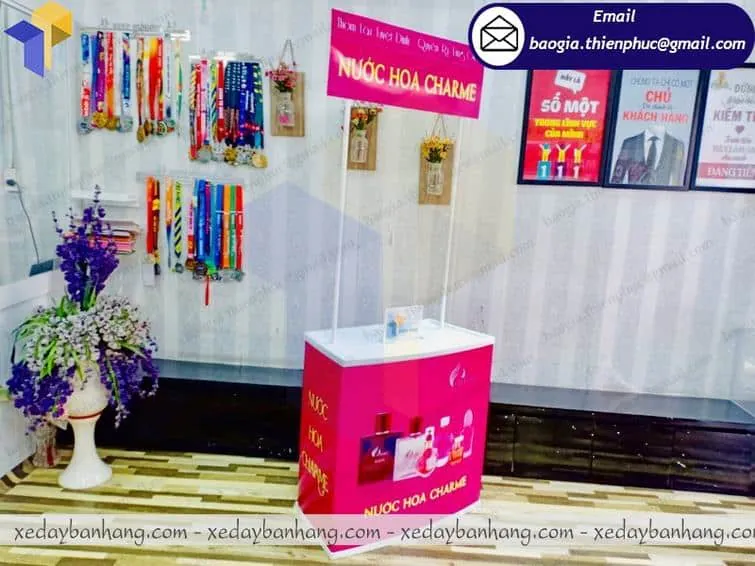 Với ưu điểm là gọn nhẹ, dễ dàng tháo lắp và di chuyển, những chiếc kệ bán hàng lưu động dường như là 1 chiếc banner di động có thể thể hiện được hết những gì mà các doanh nghiệp muốn truyền tải vào sản phẩm của họ từ sản phẩm họ muốn bán là gì, giá cả như thế nào, cho đến địa điểm chính mà bạn có thể đặt mua….