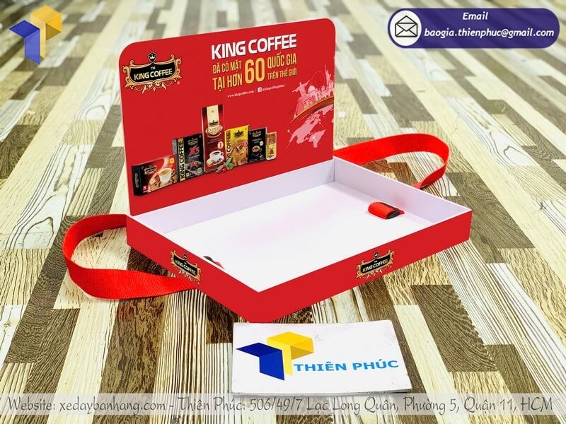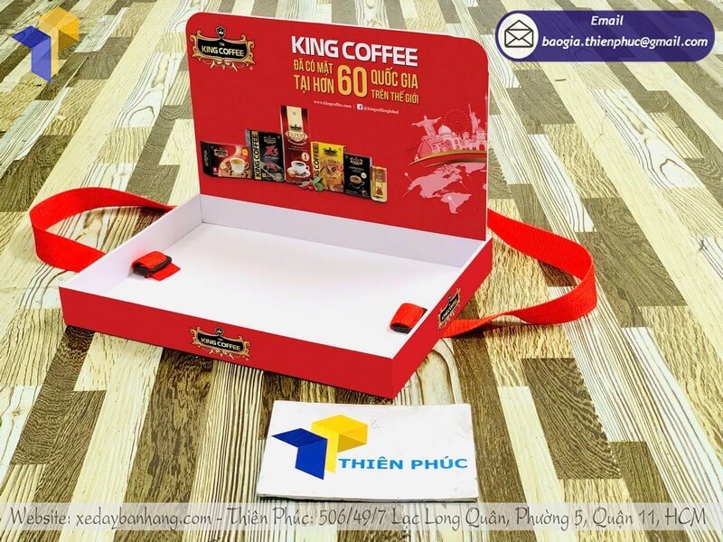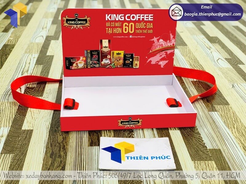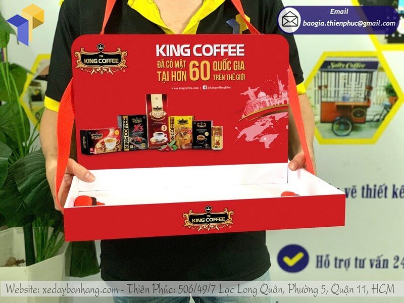 Tên sản phẩm: Đặt làm khay sampling đựng sample có dây đeo giá rẻ với thương hiệu nhãn hàng KING COFFEE