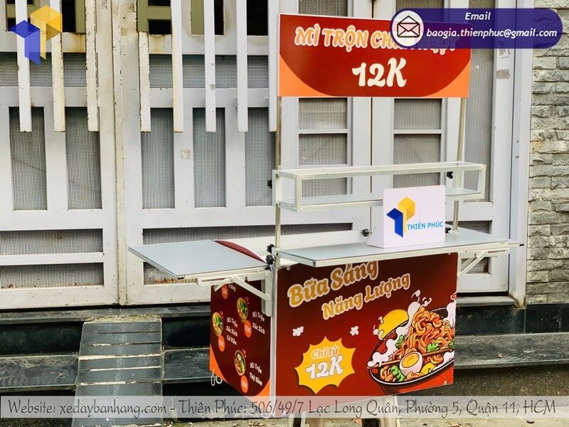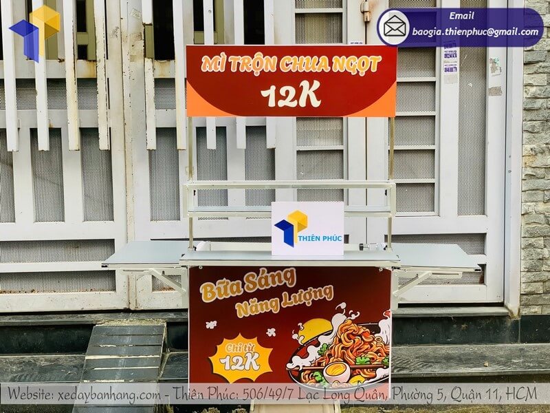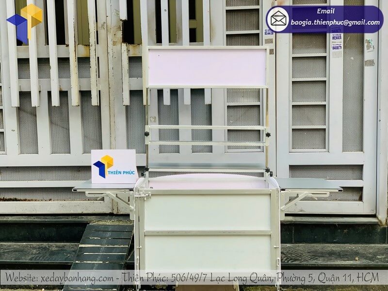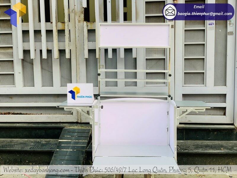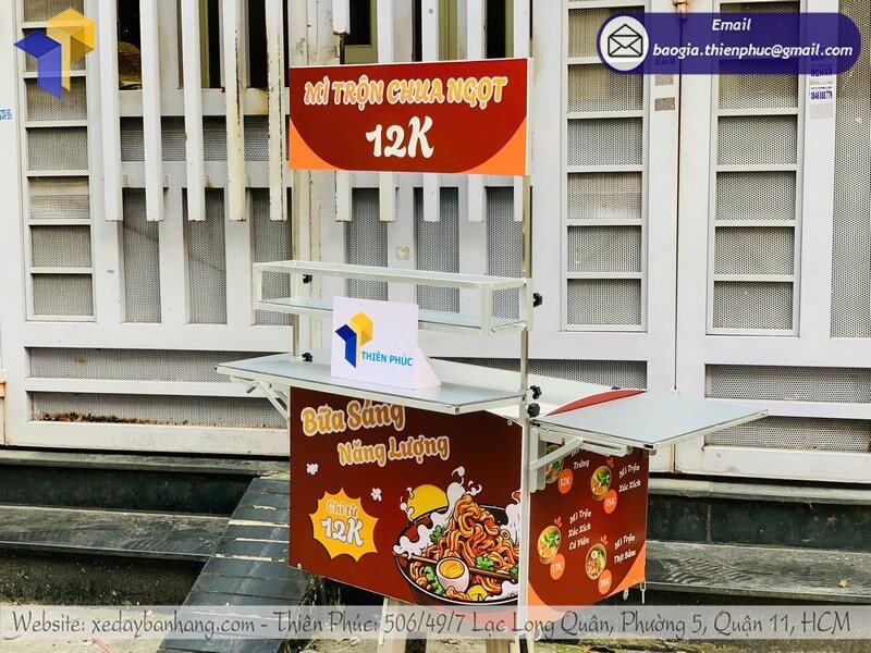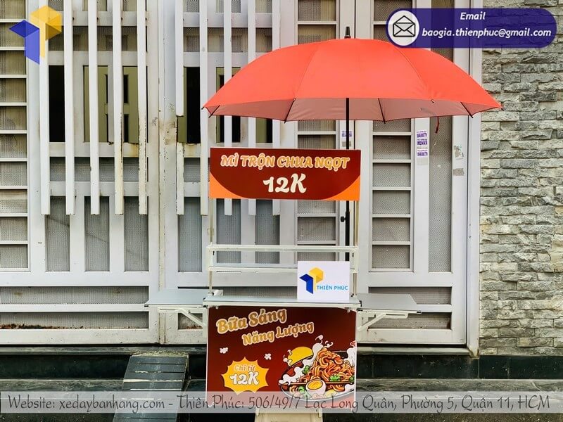 Sản phẩm được làm từ khung sắt chịu lực, inox hoặc nhựa cao cấp, đảm bảo bền bỉ, chống mưa nắng và dễ dàng vệ sinh sau mỗi ca bán hàng.