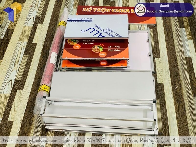 Giá tham khảo cho sản phẩm hiện nay dao động từ 880.000 VNĐ đến 980.000 VNĐ/thùng trở lên (chưa bao gồm dù che đi kèm và bệ xếp), tùy thuộc vào kích thước, chất liệu và số lượng ngăn chứa. Mức giá này đã bao gồm khung sắt chịu lực, vỏ inox hoặc nhựa cao cấp chống mưa nắng, đảm bảo bền bỉ và dễ vệ sinh. Ngoài ra, xưởng còn hỗ trợ in logo, thiết kế màu sắc theo thương hiệu, giúp thùng bán đồ ăn nhanh lưu động của bạn vừa đẹp mắt vừa chuyên nghiệp.