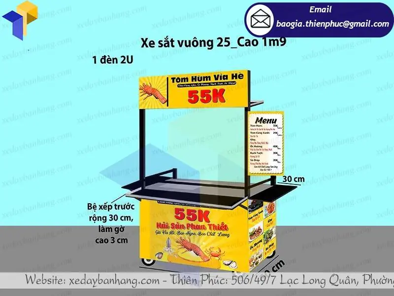 Nắm bắt được nhu cầu cần cung cấp xe sắt bán tôm hùm lưu động, xưởng Thiên Phúc – xưởng đóng xe theo yêu cầu đã sản xuất rất nhiều mẫu xe sắt bán tôm hùm lưu động đẹp, giá rẻ, chất lượng cao.