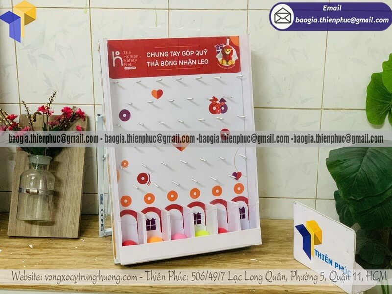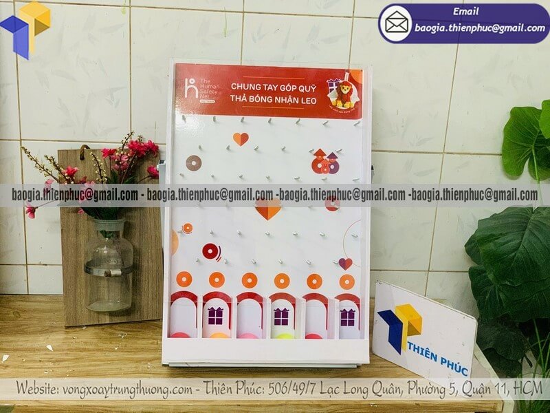 Tên sản phẩm: Đặt mẫu hộp thả banh ziczac mini để bàn tổ chức event CHUNG TAY GÓP QUỸ THẢ BÓNG NHẬN LEO
