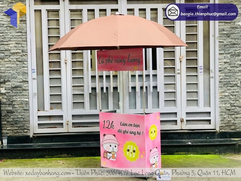 Tên sản phẩm: Đặt mẫu kệ bán cafe gấp gọn lưu động có dù che với logo Cà Phê Năng Lượng 12K