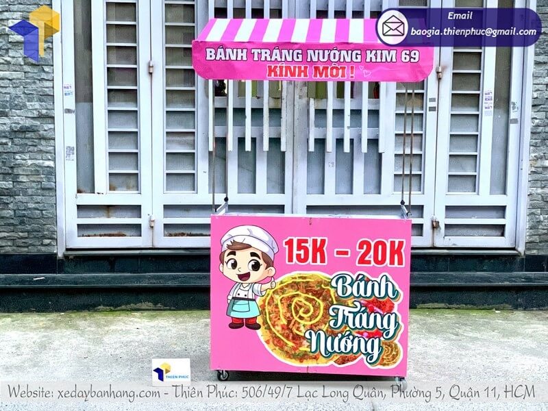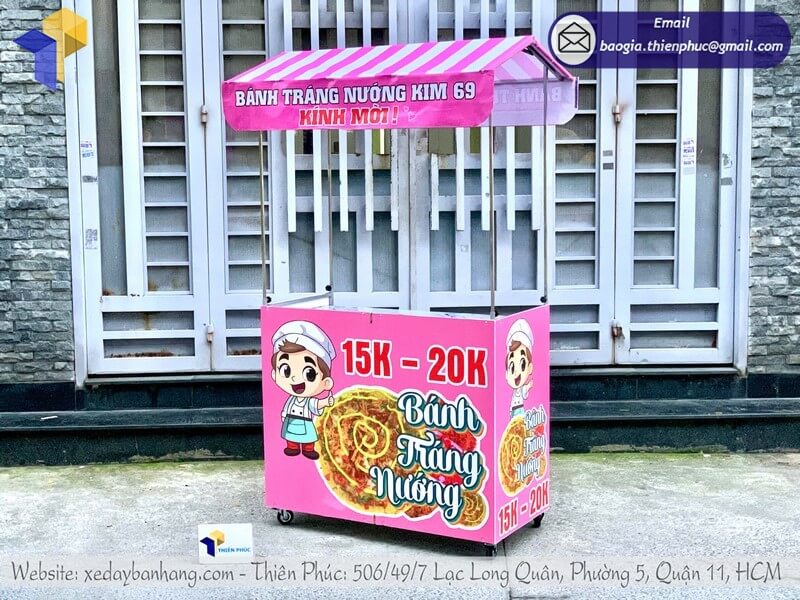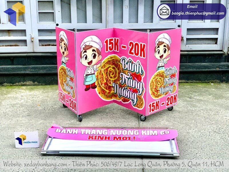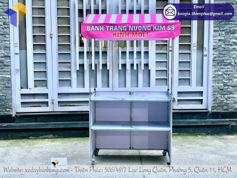 Đặt mua mẫu quầy bán bánh tráng nướng gấp gọn - Thiên Phúc chuyên sản xuất, gia công nhiều mẫu quầy xe gấp gọn với giá rẻ chỉ từ 700.000đ/quầy, nhận đặt hàng giao nhanh trong ngày trong khu vực TPHCM