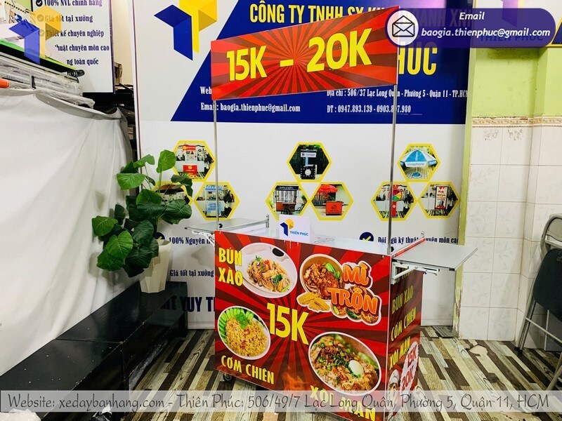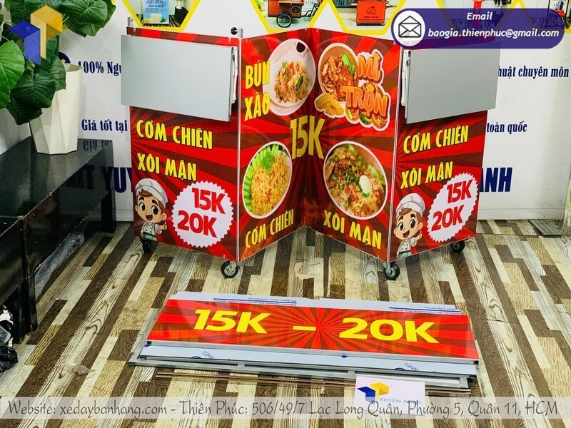 Tên sản phẩm: Đặt mua quầy bán đồ ăn gấp gọn giá rẻ với logo BÚN XÀO - CƠM CHIÊN - MÌ TRỘN - XÔI MẶN