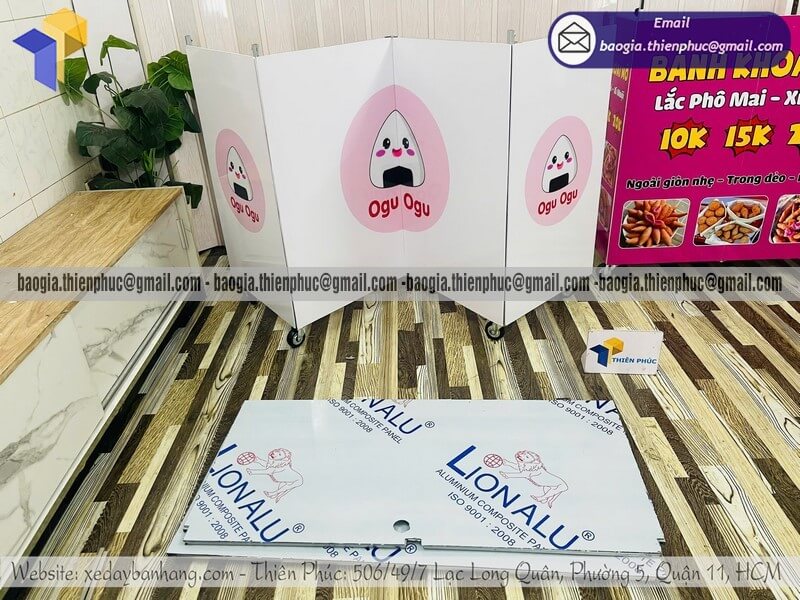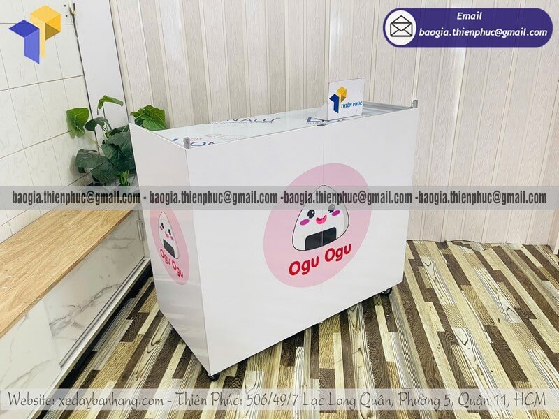 Đặt quầy bán cơm nắm hàng rong gấp gọn lắp ráp - Xưởng sản xuất & Công Ty Thiên Phúc là xưởng chuyên nhận đặt làm theo yêu cầu, gia công, sản xuất, thiết kế & in ấn logo thương hiệu, nhãn hiệu, bảng menu sản phẩm quầy bán dạo gấp gọn lưu động theo yêu cầu khách hàng với hơn 10 năm kinh nghiệm, cung cấp nhiều mẫu kệ/tủ/quầy/xe bán hàng gấp gọn lưu động, chỉ cần 700.000đ/quầy trở lên với chất lượng ốp bạt đến trên 2.200.000đ/quầy trở lên sẽ có đầy đủ kệ ly, bệ xếp,... chưa kèm theo chi phí khác như menu, ô dù,... Hỗ trợ xuất hóa đơn VAT. Đặt hàng từ 10 quầy trở lên được chiết khấu cực kỳ ưu đãi. Giao hàng nhanh trên toàn quốc. Thiết kế logo hoàn toàn miễn phí.