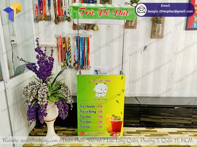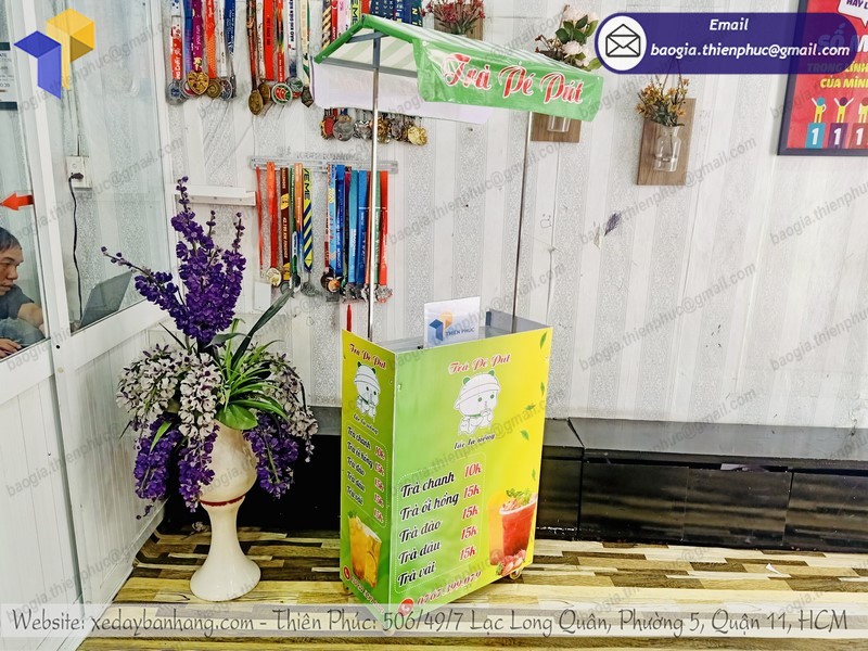 Thiên Phúc chiếm hữu đội ngũ kỹ sư giỏi, nhân viên cấp dưới phong cách thiết kế phát minh sáng tạo, nhiều năm kinh nghiệm tay nghề. Vì thế, chỉ cần bạn đưa ra nhu yếu, chúng tôi sẽ hiện thực hóa sáng tạo độc đáo, trang trí cho bạn một mẫu sản phẩm xe đẩy bán trà trái cây vừa lòng và đẹp nhất, bảo vệ mẫu mẫu sản phẩm đó vừa độc lạ, vừa mới lạ, lại không trùng lặp với bất kỳ tên thương hiệu nào .