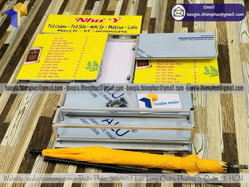 Tên sản phẩm: Đặt thùng bán nước ép mini gấp gọn lắp xe máy với logo nhãn hiệu Như Ý