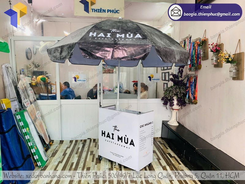 Nếu bạn đang có ấp ủ cùng ý tưởng hay cần tới dịch vụ gia công thiết kế xe bán hàng hiện đại, xe café take away, xe bán hàng thông minh, xe cố định, booth sampling giá rẻ, xe đạp bán hàng tiện lợi,... hãy liên hệ ngay đến THIÊN PHÚC chúng tôi để được tư vấn và hỗ trợ MIỄN PHÍ ngay nhé! Chúng tôi rất hân hạnh và sẵn sàng phục vụ quý khách hàng!