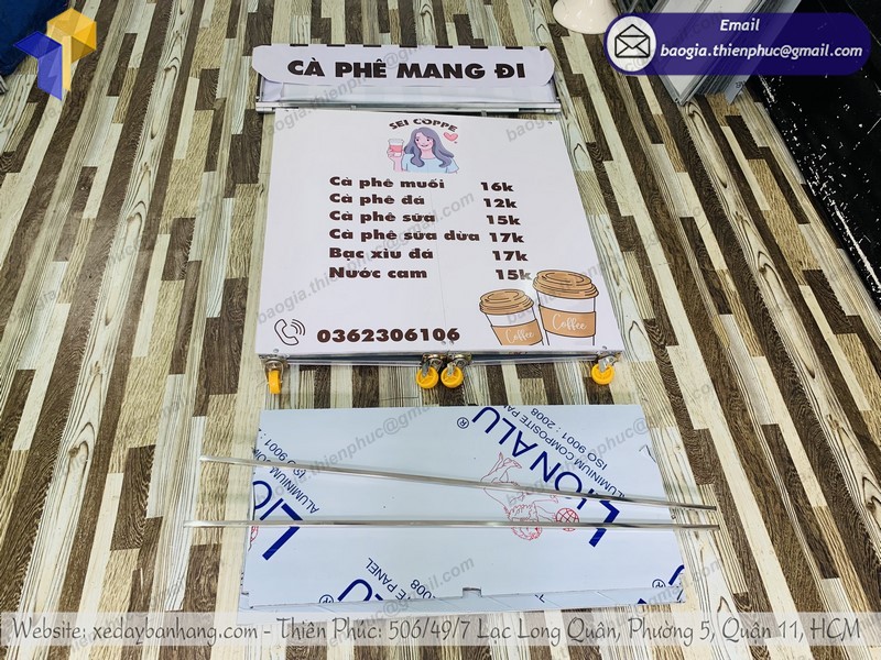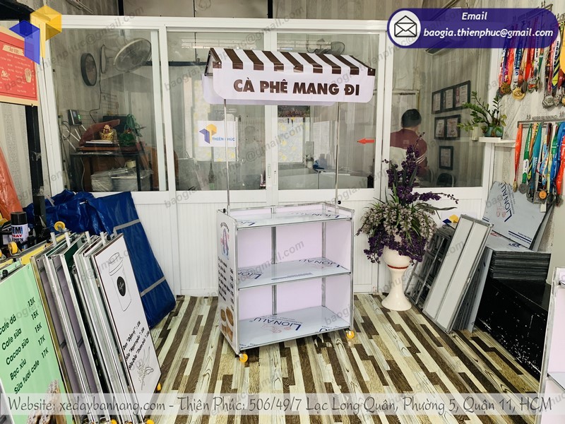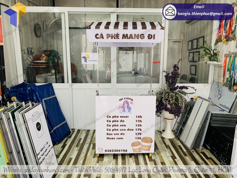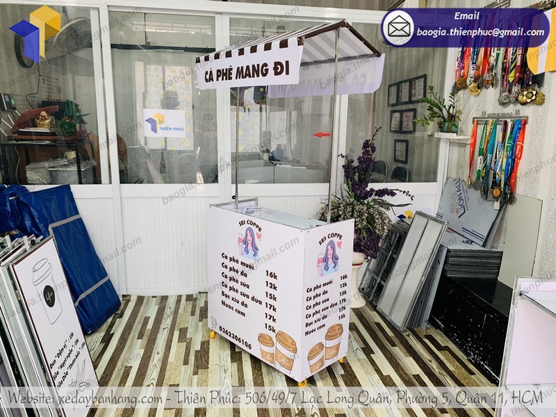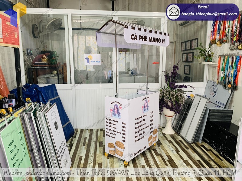Thiên Phúc là nơi cung cấp các giải pháp thiết kế và thi công quảng cáo. Đồng thời, cũng là thương hiệu xe đẩy bán hàng được nhiều người tin dùng và sử dụng. Ngoài ra, con nhận gia công theo nhu cầu và mong muốn của khách hàng. Chúng tôi luôn đặt tiêu chí “sự hài lòng của quý khách là niềm tự hào của chúng tôi”. Tại Thiên Phúc có vô vàn mẫu mã đa dạng, giá cả phù hợp; chất lượng và uy tín trải dài khắp 64 tỉnh thành với hệ thống vận chuyển xuyên suốt 3 miền với thời gian nhanh nhất.