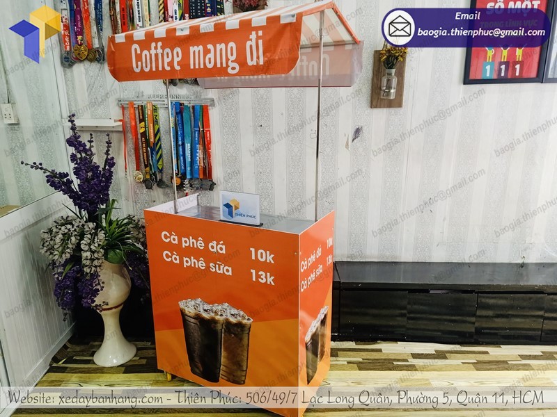 Quầy cà phê rang xay di động là hình thức kinh doanh lưu động tiện lợi, dễ di chuyển, không cần thuê quá nhiều mặt bằng để kinh doanh. Bên cạnh đó, việc tìm địa điểm mua tủ bán cà phê đẹp, giá rẻ để kinh doanh quán cafe hoặc cà phê take away, cà phê lề đường vô cùng khó khăn. Bạn đang băn khoăn không biết giá xe bao nhiêu, ở đâu bán xe cà phê mang đi uy tín? Hãy đến với Thiên Phúc địa chỉ gia công tủ bán cà phê uy tín – chất lượng. Hơn thế, hôm nay chúng tôi bật mí một vài kinh nghiệm để lựa chọn mua tủ bán cà phê, xe bán cà phê đúng giá, đúng chất lượng.