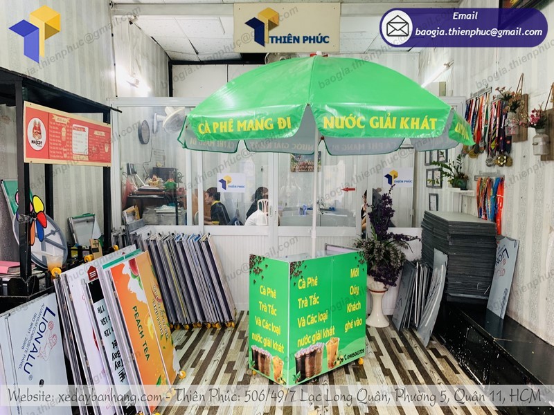 Nhận thiết kế gia công theo yêu cầu: Ngoài những mẫu xe cà phê thiết kế sẵn, Thiên Phúc còn nhận gia công thiết kế xe cà phê di động theo yêu cầu giúp quý khách có thể tìm và mua bất cứ dòng sản phẩm nào