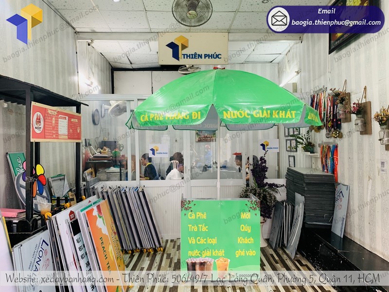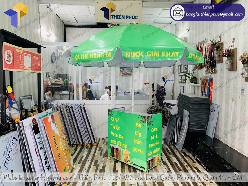 Bên cạnh sản xuất các mẫu sản phẩm với mẫu mã, kích thước phổ thông thì Thiên Phúc còn nhận đặt và thiết kế xe cà phê di động theo yêu cầu cực tiện lợi. Bạn hoàn toàn có thể yêu cầu Thiên Phúc về 1 mẫu quầy bán café di động với kích thước lớn nhỏ tùy ý, miễn sao sản phẩm đó đảm bảo tốt quá trình kinh doanh của bạn. Chưa hết, về những trang trí hình ảnh màu sắc decal của quầy bạn cũng hoàn toàn có thể yêu cầu bên công ty chúng tôi thiết kế theo ý tưởng của mình. (Mách bạn đó là thiết kế decal bên công ty Thiên Phúc là hoàn toàn miễn phí nhé!) Thật tuyệt vời đúng không!