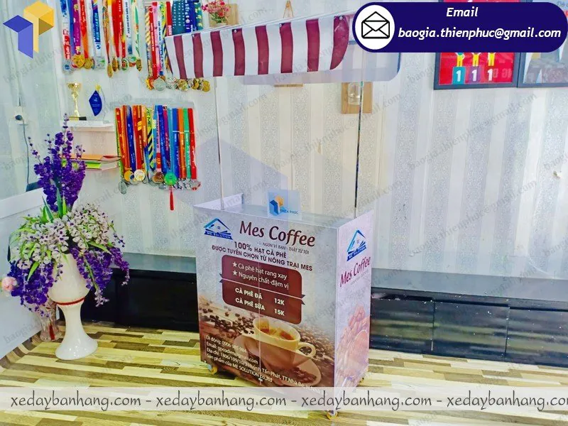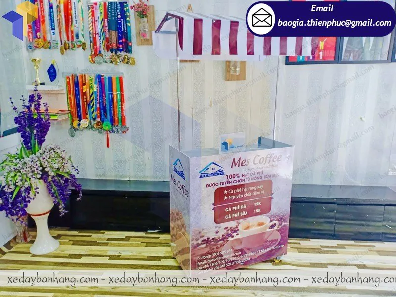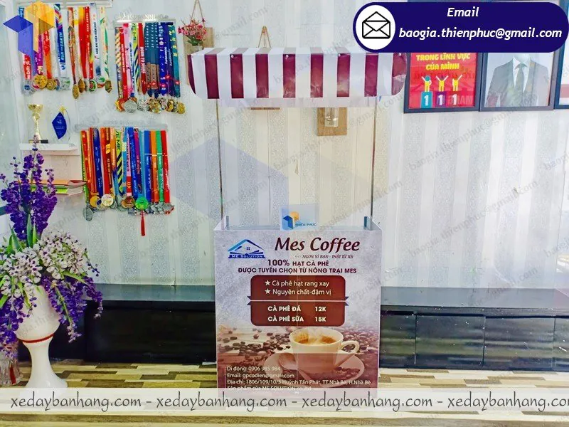 Xe lắp ráp bán coffee vỉa hè giá rẻ ngày nay được thiết kế độc đáo, sáng tạo, với chất liệu đa dạng, bền đẹp, chịu được trọng lượng lên đến 25kg, dễ dàng di chuyển, tháo lắp mọi lúc mọi nơi, có thể in ấn, quảng bá thương hiệu ngay trên booth bán hàng bằng sắt này, xưởng sản xuất Thiên Phúc tự hào là đơn vị chuyên sản xuất và cung cấp các loại xe lắp ráp bán coffee vỉa hè giá rẻ chất lượng cao, giá tốt, được nhiều đơn vị doanh nghiệp tin tưởng làm đối tác lâu dài.