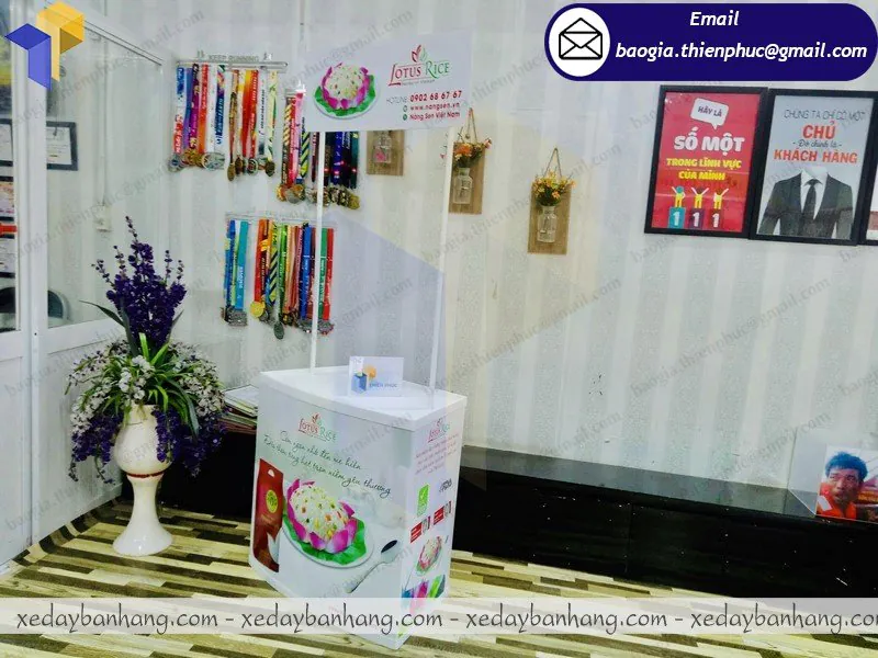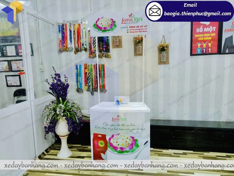 Địa chỉ đặt làm booth nhựa phát gạo từ thiện giá rẻ ở hcm