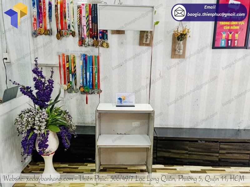 - Về chất lượng: sản phẩm booth sampling quảng cáo do Thiên Phúc cung cấp đã có thương hiệu trên thị trường trong nhiều năm qua về độ bền, sự chắc chắn và tiện lợi cao, hỗ trợ kinh doanh có hiệu quả.