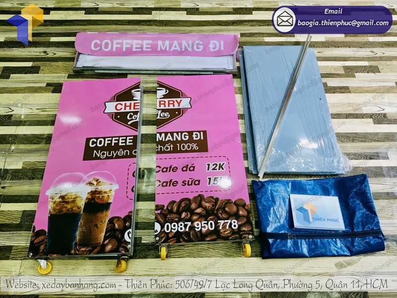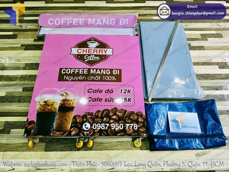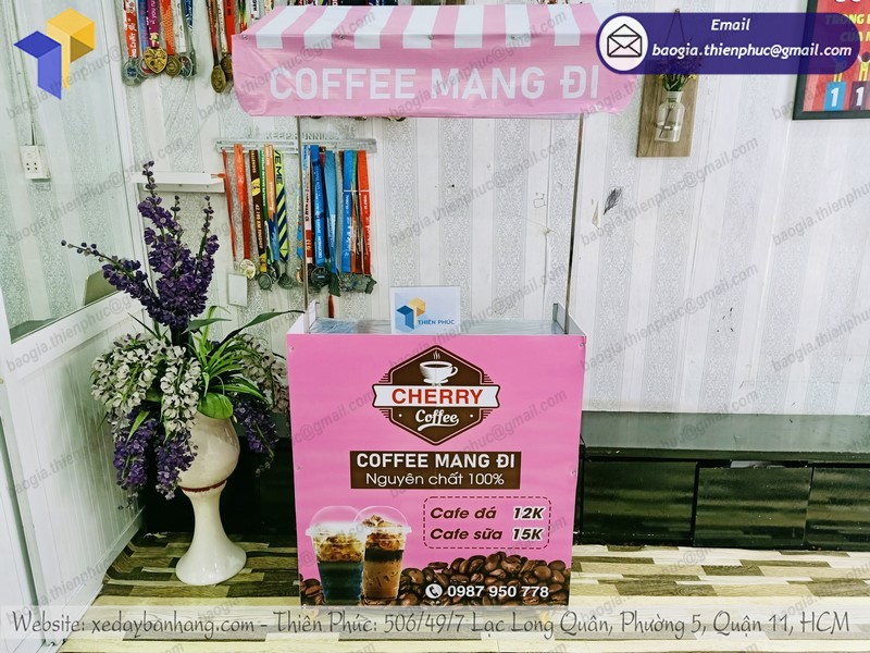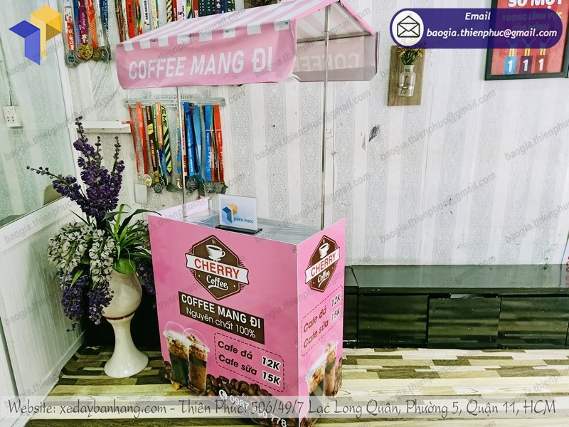 Công ty thiết kế và gia công Thiên Phúc là một trong những địa chỉ chuyên sản xuất và phân phối tủ (xe) bán cà phê tiện lợi, uy tín nhất định bạn không thể bỏ qua. Với hơn 10 năm kinh nghiệm trong lĩnh vực gia công xe đẩy bán hàng. Ở tất cả các lĩnh vực như xe bán trà sữa; xe bán sinh tố; xe bán trái cây; hoặc thậm chí các sản phẩm, cửa hàng thực phẩm, thức ăn và thức uống. Kể cả là các booth bán cà phê mang đi hay tủ cà phê lưu động. Các sản phẩm gia công phân phối tại Thiên Phúc luôn được người tiêu dùng đánh giá cao:
