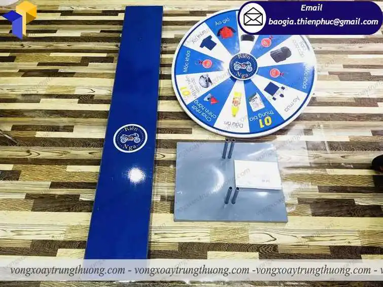 Với hơn 10 năm trong việc gia công các vật phẩm quảng cáo, Thiên Phúc tự hào là đối tác của nhiều doanh nghiệp lớn nhỏ trên cả nước. Chúng tôi cam kết sẽ giao đến tay bạn những chiếc vòng quay may mắn hoàn hảo và đẹp nhất. Quý khách hàng cần Vòng quay chân trụ trúng quà tặng hay các vật phẩm quảng các khác vui lòng liên hệ hotline 0903.897.980 để được chúng tôi hỗ trợ bạn nhanh nhất.