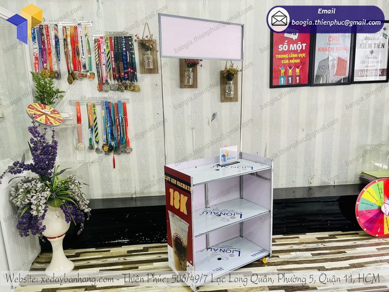 Bánh xe có lớp cao su tổng hợp siêu bền dù nắng hay mưa, dù trưa hay tối đều di chuyển nhanh chóng không nặng nề, cộng với lớp decal chất liệu và keo cao cấp dính tốt được nhân viên thiết kế vẽ lên những hình ảnh thu hút khách hàng cực tốt, đẹp sang trọng và bắt mắt.