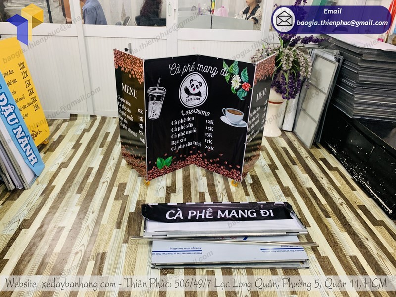 xe bán cà phê tiện lợi tại Thiên Phúc chúng tôi thường có thiết kế rất đẹp mắt, được in ấn sản phẩm, tên của các thương hiệu trực tiếp lên quầy giúp cho quý khách hàng dễ dàng nhận diện được thương hiệu từ xa.