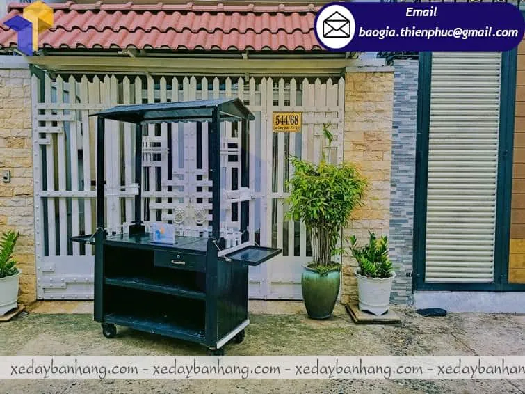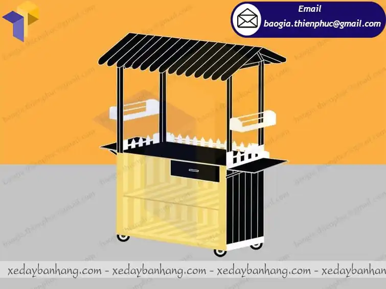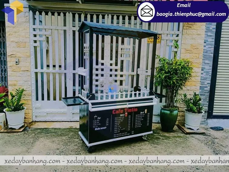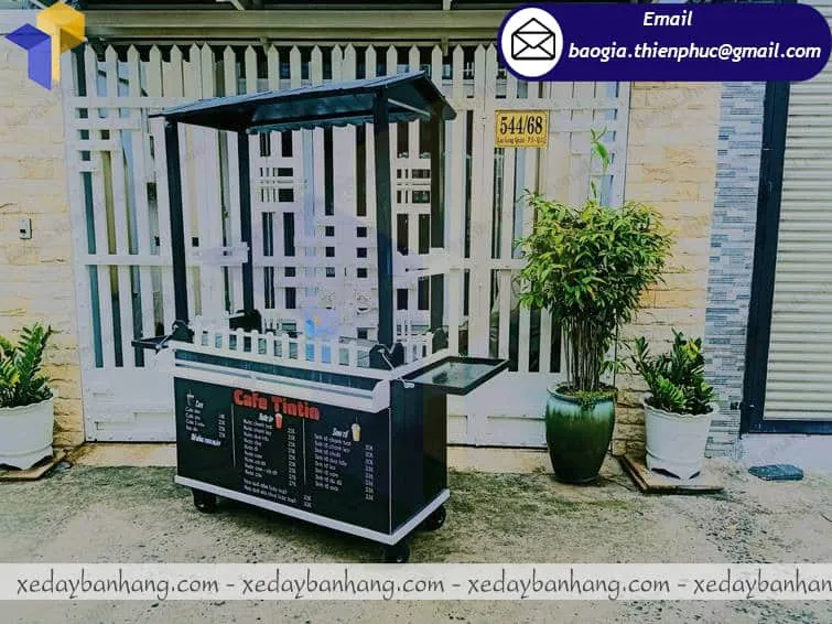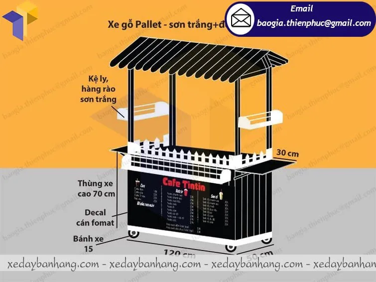 Xe đẩy bán cà phê của Thiên Phúc được thiết kế bằng chất liệu gỗ pallet bền đẹp và thân thiện với môi trường. Được thiết kế nhỏ gọn, đầy đủ như 1 quán cafe nhỏ, rất tiện ích, đẹp mắt, lôi cuốn khách hàng. Với gam màu đen sang trọng chiếc xe cà phê tạo điểm nhấn thu hút khách hàng hơn. xe gỗ bán cà phê có mái che và 4 bánh dễ dàng di chuyển đến mọi địa điểm, địa hình khác nhau mà không cố định như quán cà phê truyền thống.