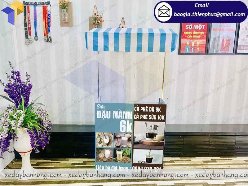 Nếu bạn ngại đến với chúng tôi vì dịch thì hãy “stay at home” gửi mẫu xe bán sữa đậu nành lắp ráp cho chúng tôi qua số hotline zalo 0903897980 để được chúng tôi tận tình tư vấn báo giá và gửi chiếc booth đến tận tay bạn. Liên hệ ngay để đặt mua nhé, các tình yêu của Thiên Phúc