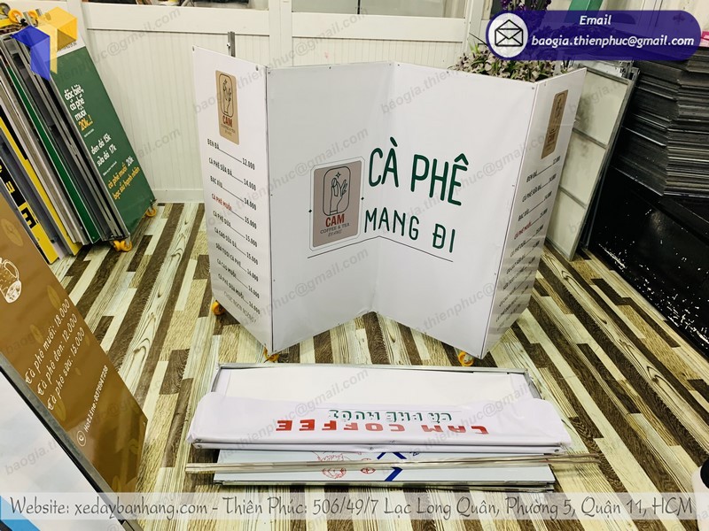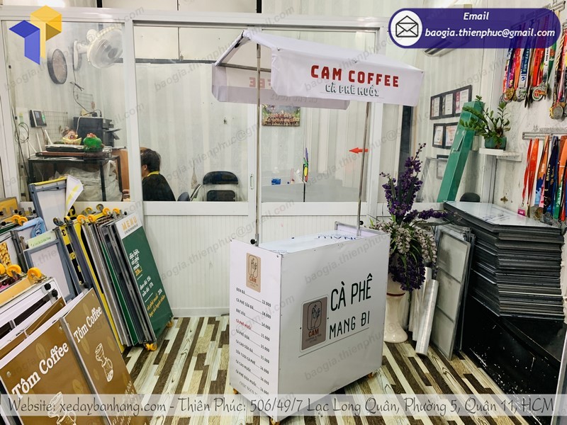 Một trong những địa chỉ bạn có thể hoàn toàn yên tâm khi mua sắm xe bán cà phê gấp M đó chính là Thiên Phúc. Tại Thiên Phúc cung cấp xe bán cafe, trà sữa,.. di động bằng chất liệu inox 304 cao cấp với đề can nổi bật, đẹp mắt để thu hút khách hàng ghé quầy.