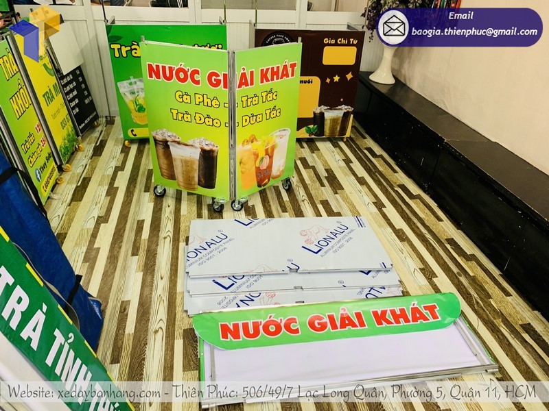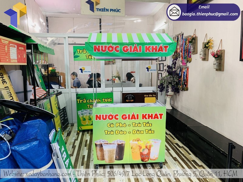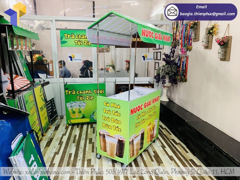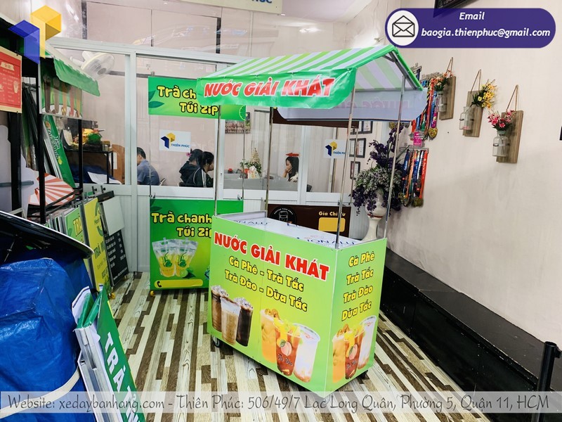 Xe xếp bán nước giải khát còn được gọi với những tên gọi khác như booth bán hàng, quầy bán hàng. Đây là là một trong những vật dụng quảng cáo đang được sử dụng rộng rãi và thực sự thích hợp cho các mô hình điểm bán hàng di động như chương trình, event tại các shop bán hàng, các đại lý, các điểm bán hàng trên vỉa hè, công trường học hoặc trong hội chợ,...