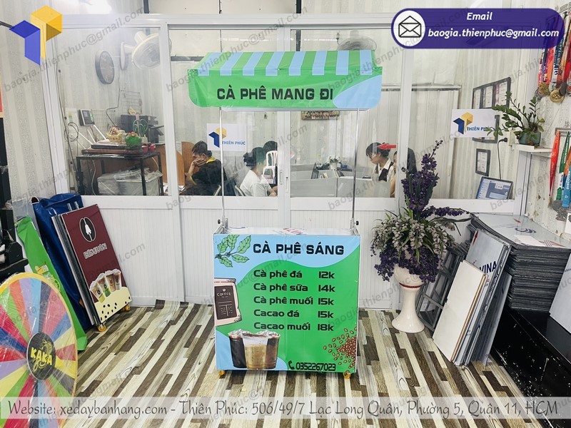 Booth bán cà phê giá bao nhiêu tiền? Đó là thắc mắc đầu tiên của không ít người khi bắt đầu hình thức kinh doanh xe lắp ráp bán cà phê này. Để đáp ứng nhu cầu sử dụng, điều kiện kinh tế của chủ quán mà Thiên Phúc sản xuất những dòng xe cà phê đẹp với đa dạng mẫu mã, kiểu dáng và kích thước khác nhau. Tùy vào chất liệu, kiểu dáng, kích thước mà các sản phẩm có giá cả khác nhau, tuy nhiên chênh lệch không lớn, dao động từ 600.000 - 2.000.000 đồng.