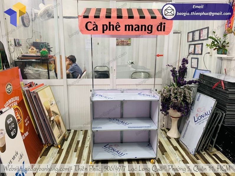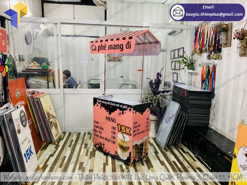 Một trong những địa chỉ bạn có thể hoàn toàn yên tâm khi mua sắm xe đẩy bán cafe đó chính là Thiên Phúc. Tại Thiên Phúc cung cấp xe bán cafe, trà sữa,.. di động bằng chất liệu inox 304 cao cấp với đề can nổi bật, đẹp mắt để thu hút khách hàng ghé quầy.