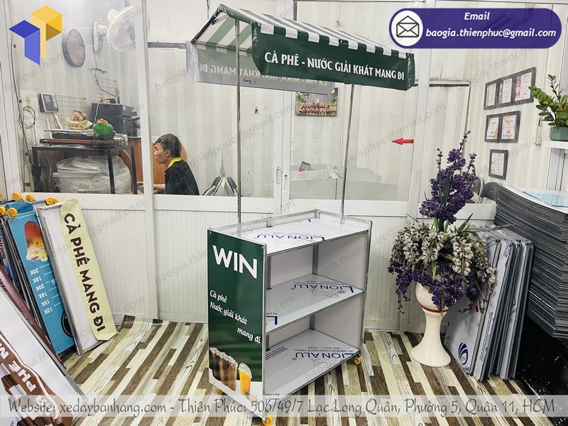 Một trong những địa chỉ bạn có thể hoàn toàn yên tâm khi mua sắm xe đẩy bán cafe đó chính là Thiên Phúc. Tại Thiên Phúc cung cấp xe bán cafe, trà sữa,.. di động bằng chất liệu inox 304 cao cấp với đề can nổi bật, đẹp mắt để thu hút khách hàng ghé quầy.