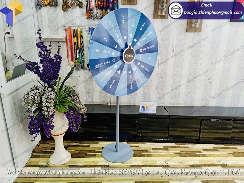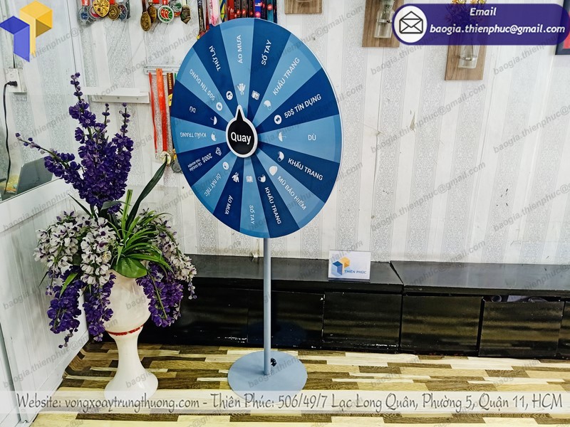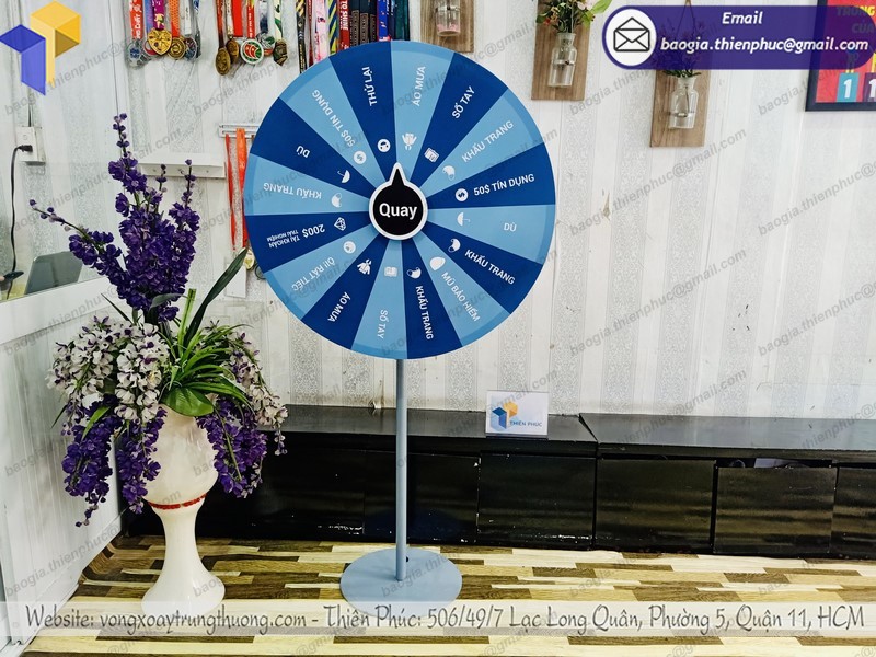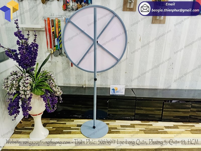 Sản phẩm vòng quay trúng thưởng quà tặng của Thiên Phúc luôn gia công theo mọi mẫu mã nhu yếu của quý người mua ,. Thiết kế với khung xương chắc như đinh, trưởng thành, chống chịu được nắng gió mạnh, rất thích hợp với những chương trình quảng cáo, ra đời loại sản phẩm, tri ân người mua. Việc sử dụng vòng quay trúng thưởng này cũng rất tiện lợi khi hoàn toàn có thể tháo lắp, thuận tiện vệ sinh vệ sinh, sử dụng tái sử dụng nhiều lần, chỉ cần đổi khác nội dung tranh backlist dán trên mặt vòng quay.