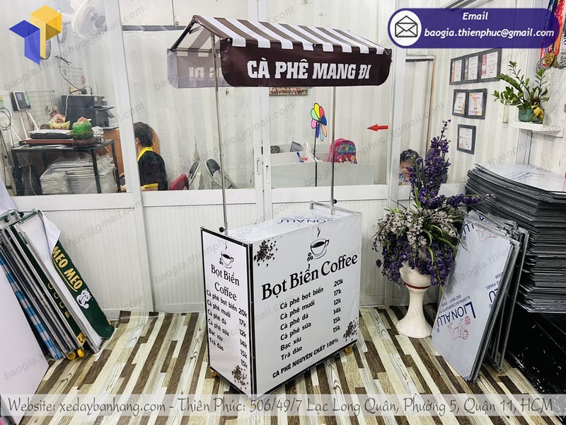 Dù là mẫu xe cà phê gấp gọn hoặc bất kỳ mẫu mã, kích thước nào khác, đơn vị hoàn toàn có thể đáp ứng cho bạn bằng tất cả chuyên môn và chất lượng dẫn đầu thị trường. Chúng tôi sở hữu bề dày hơn 10 năm hoạt động, thiết kế hàng nghìn mẫu sản phẩm, làm hài lòng hàng triệu khách hàng. Toàn bộ thông tin dịch vụ đã được Thiên Phúc công bố trên website, social đầy đủ.