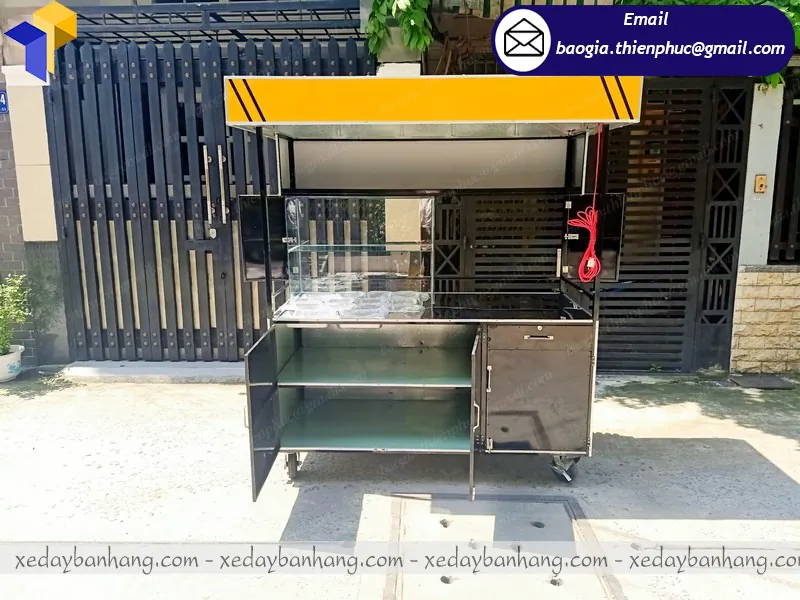 Chất liệu inox: Sử dụng inox 304, là inox thông dụng thường được sử dụng để làm xe bán hàng lưu động, là loại inox ngoại nhập giá thành cao, độ bền tốt