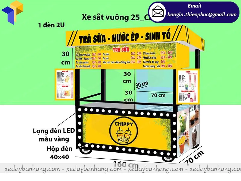 - Gía quầy bán trà sữa giao động từ 4 triệu đến 8tr tùy theo kích thước, mẫu mã và tiện ích trên xe