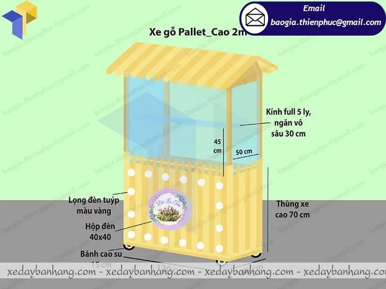 Xe gỗ bán cà phê sữa đá được thiết kế với menu được in ngay trên thân xe, nên khi bán cà phê sữa đá mang đi, rất ít khách hàng hỏi menu, giúp giảm thời gian bán, tăng doanh thu với lợi nhuận thật hấp dẫn. Không chỉ có vậy, quý khách có thể tự trang bị lọng đèn led để bán vào buổi tối – khoảng thời gian rất nhiều người muốn uống café nhưng những quán quen đều đông khách đến mức không thể ở lại uống hoặc mua đem về.
