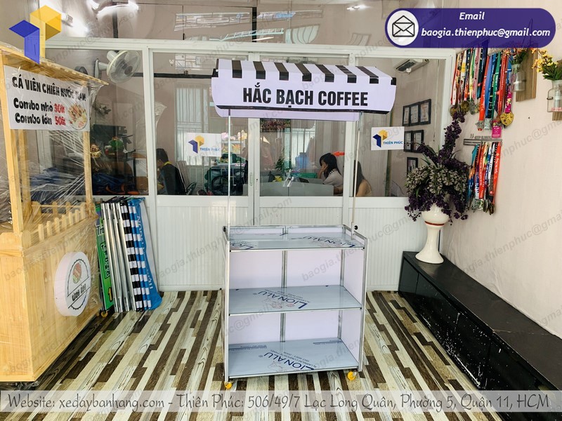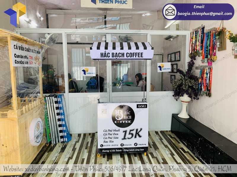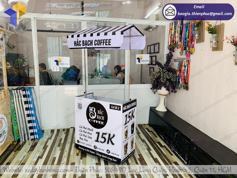 Hiện nay, Thiên Phúc chuyên thiết kế, sản xuất các dòng xe cà phê khác nhau. Do nguồn nguyên liệu được nhập khẩu trực tiếp từ nhà sản xuất nên giá xe khá cạnh tranh, chất lượng xe bảo đảm, chống han gỉ tốt.