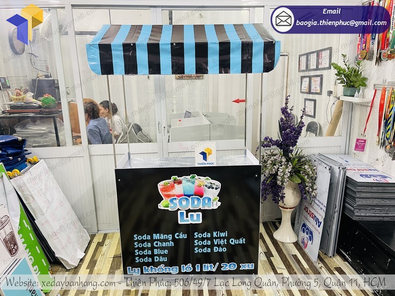 Thiên Phúc là công ty nổi tiếng cung ứng những mẫu xe bán nước gấp gọn nhất đến tay người tiêu dùng đồng thời là đơn vị thiết kế xe bán nước soda vỉa hè theo yêu cầu của khách hàng với giá cả hợp lý nhất trên cả nước. Những sản phẩm xe bán nước của chúng tôi đều làm hài lòng khách hàng, bởi đảm bảo đáp ứng những nhu cầu về mẫu mã, kích thước đã đưa ra từ trước của các chủ quán.