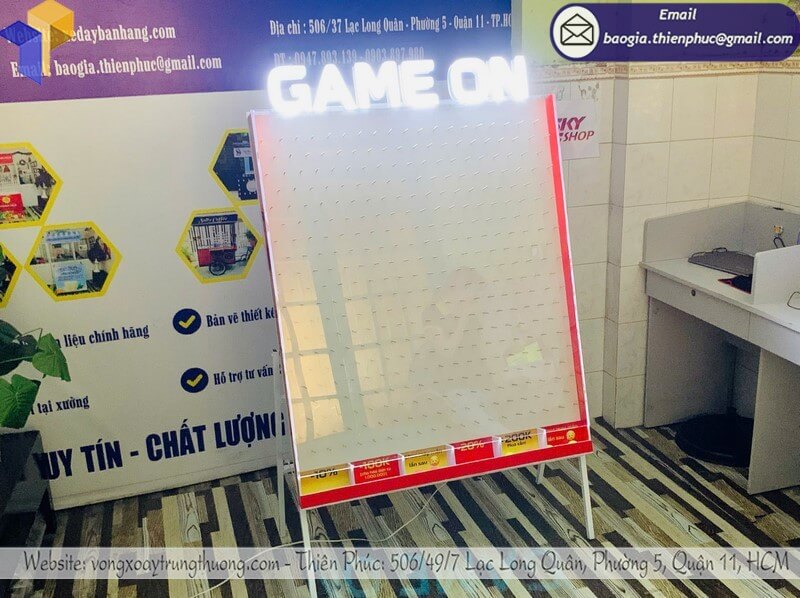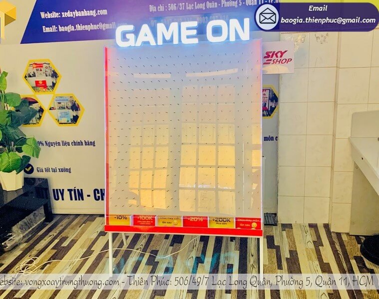 Khách hàng có thể đến trực tiếp xưởng hoặc văn phòng của chúng tôi để đặt hàng, xem mẫu sản phẩm và lựa chọn thiết kế phù hợp nhất. Việc này giúp bạn kiểm tra chất lượng khung thả rơi bóng ziczac trúng quà minigame ngay tại xưởng, tư vấn trực tiếp với đội ngũ chuyên nghiệp và nhận báo giá minh bạch, nhanh chóng. Đây là cách thuận tiện nhất để đảm bảo sản phẩm đúng yêu cầu và yên tâm về dịch vụ.