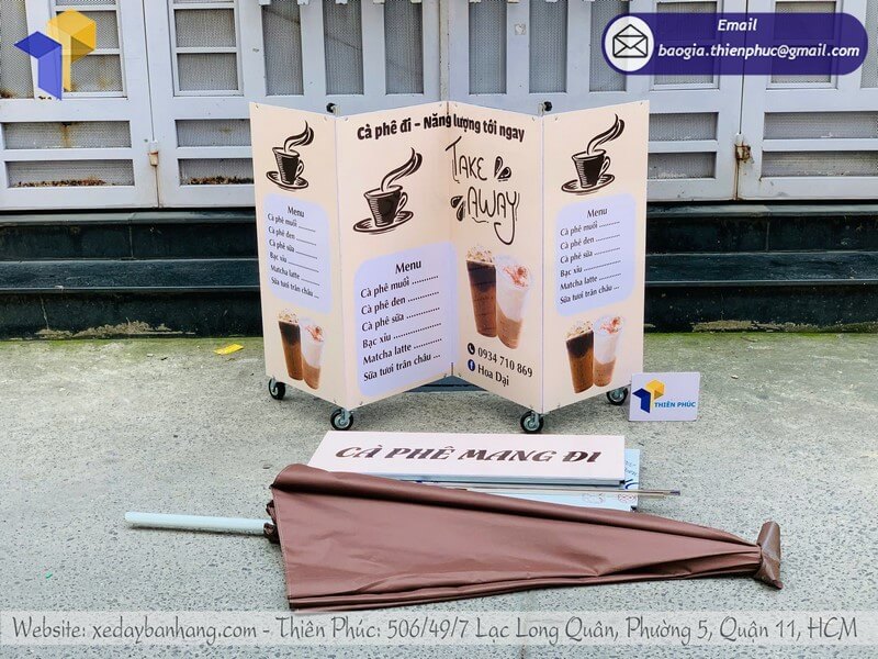 Quầy bán cafe mang đi đang trở thành xu hướng kinh doanh di động được ưa chuộng tại Việt Nam. Nếu bạn đang tìm kiếm giải pháp gia công quầy bán cafe mang đi có dù che vừa đẹp, vừa bền, lại thu hút khách hàng nhanh chóng, bài viết này sẽ cung cấp đầy đủ thông tin chi tiết, từ mẫu sản phẩm, báo giá, nhu cầu sử dụng đến quy trình mua hàng.