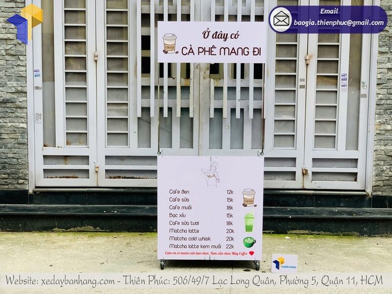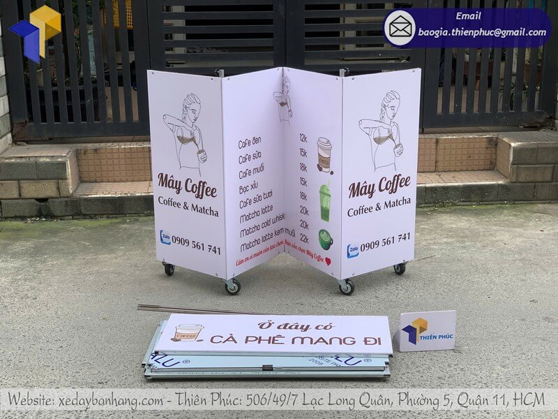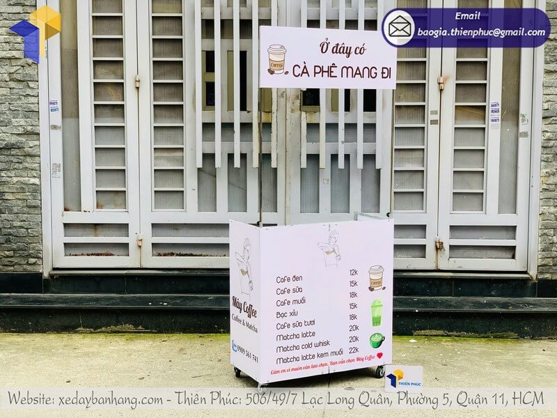 Gia công quầy cafe gấp gọn dạo giá rẻ - Thiên Phúc chuyên gia công, lên đơn thiết kế miễn phí theo yêu cầu, giá rẻ tại xưởng sản xuất.